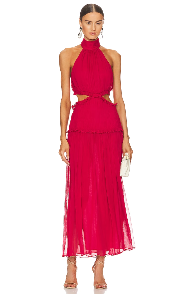 Hey there, party people, picture this: You walk into a room, and all eyes are on you. Heads turn, jaws drop, and whispers of admiration fill the air. What’s your secret? It’s simple – the perfect red dress. Join me as I share my love affair with the Shona Joy Marquis High Neck Cut Out Midi Dress in Roma Red, the ultimate show-stopper for every party and special occasion.